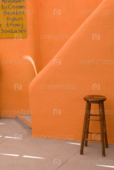 Стул рядом с оранжевые стены в Санторини