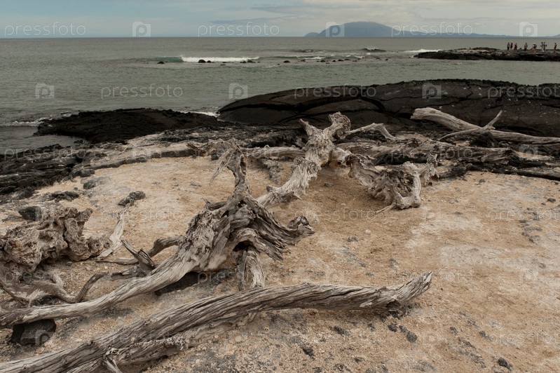 Коряги на побережье, Остров Фернандина, Галапагосские острова, Эквадор