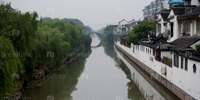 Дома вдоль ручья, Сучжоу, провинция Цзянсу, Китай