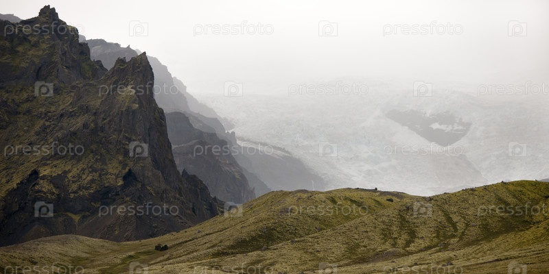 Скалистые горы, туманный ледник, холмы