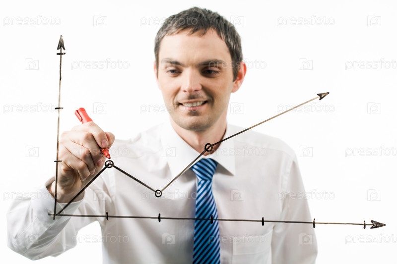 Фотографию графика, нарисованного счастливым профессионалом во время презентации