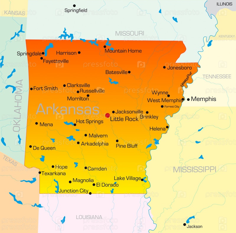 Векторная карта штата Арканзас, США