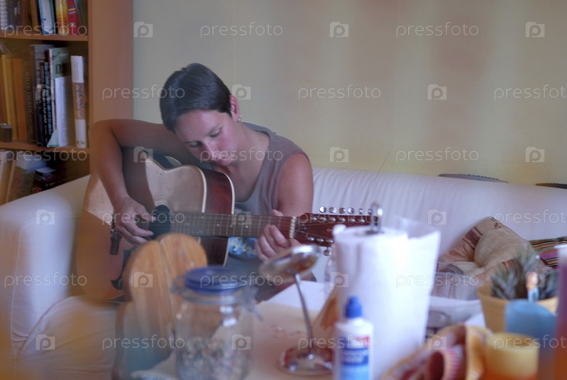 Взрослая женщина играть на гитаре