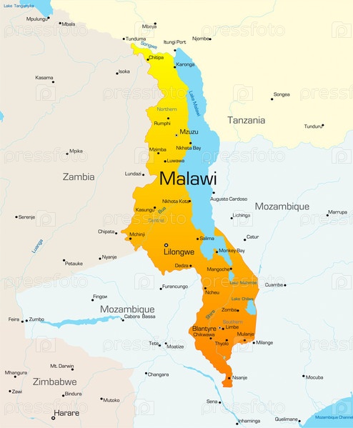 Векторная карта государства Малави