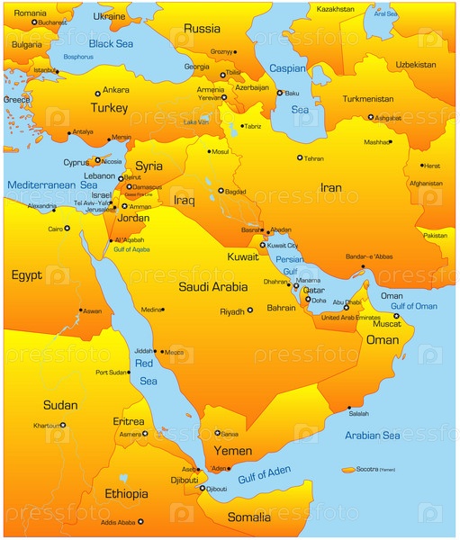 Карта стран Ближнего Востока, иллюстрация