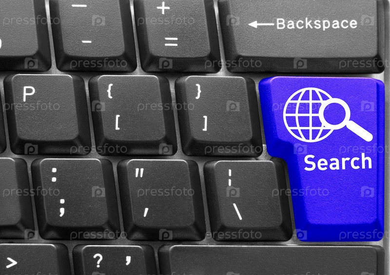 Компьютерная клавиатура с голубой кнопкой "Поиск"