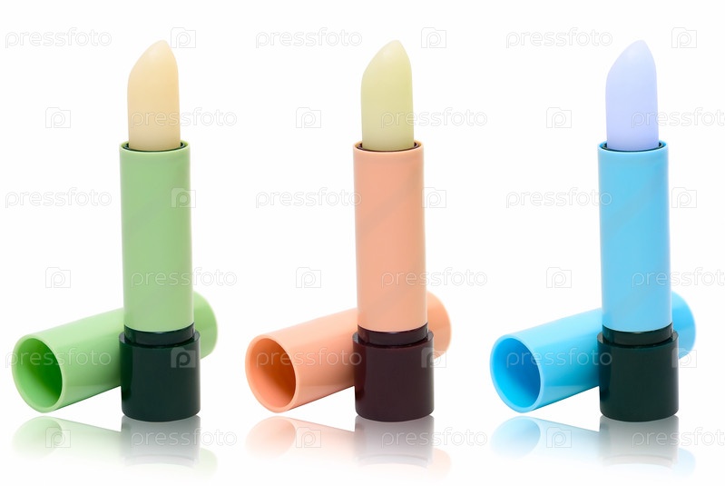 Три гигиенические помады на белом фоне