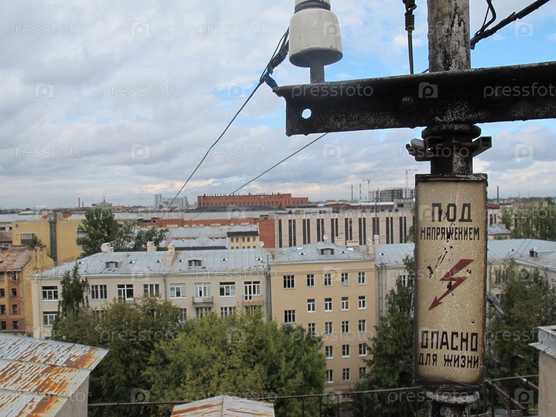 Электрический столб с предупреждающим знаком