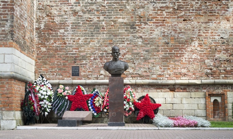 Бюст солдата около Смоленской крепостной стены, Смоленск, Россия