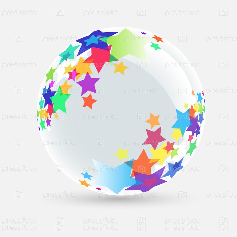 Белый шар с разноцветными звездочками, иллюстрация на белом фоне