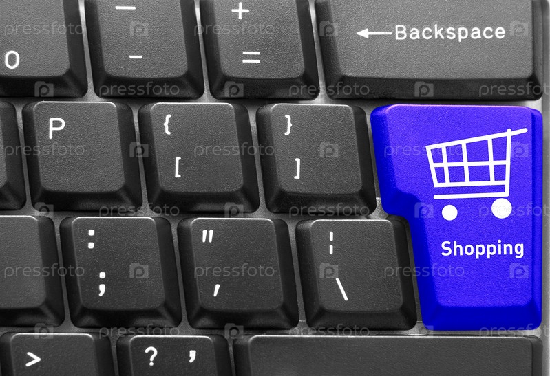 Синяя клавиша Шопинг на компьютерной клавиатуре