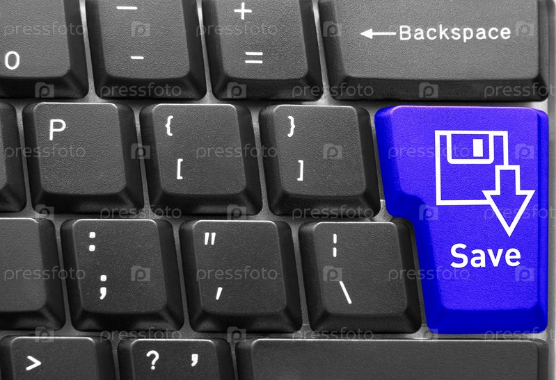Синяя клавиша Сохранить на компьютерной клавиатуре
