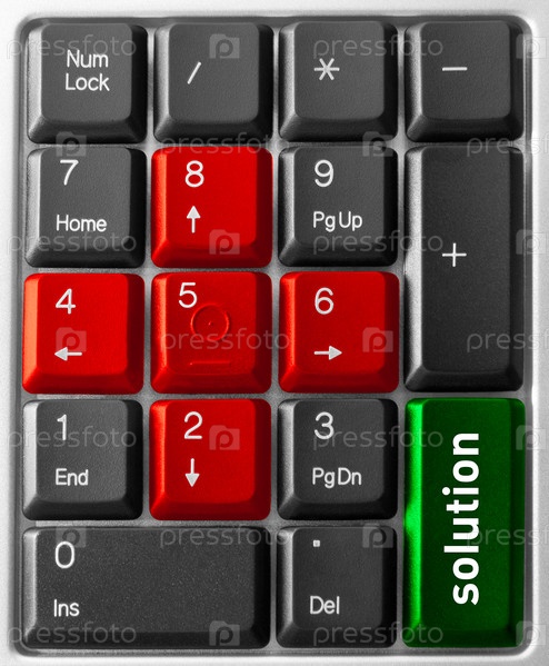Красные клавиши и зеленая клавиша Решение на цифровой компьютерной клавиатуре