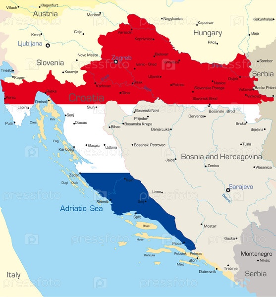 Политическая карта Хорватии, окрашенная в цвета национального флага