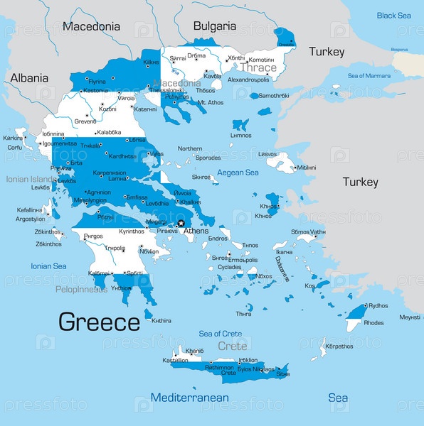 Политическая карта Греции, окрашенная в цвета национального флага
