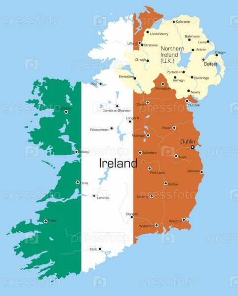 Политическая карта Ирландии, окрашенная в цвета национального флага