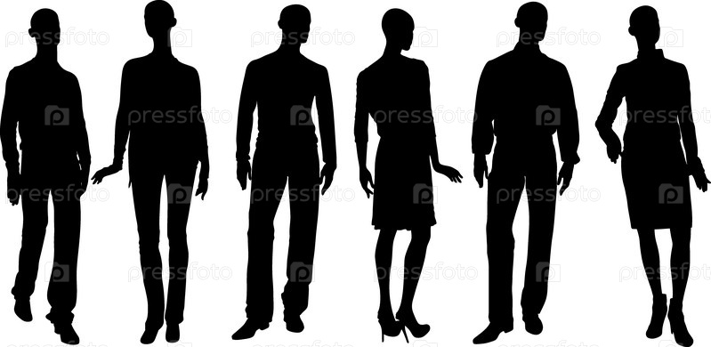 Коллекция черных мужских и женских силуэтов на белом фоне