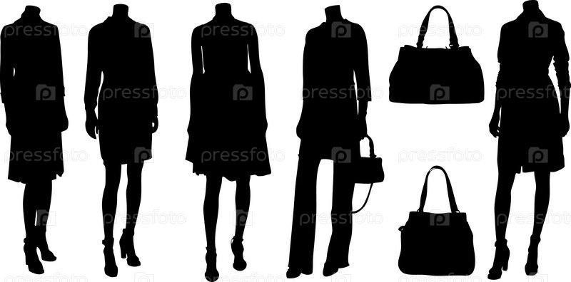Черные силуэты манекенов в различной одежде на белом фоне