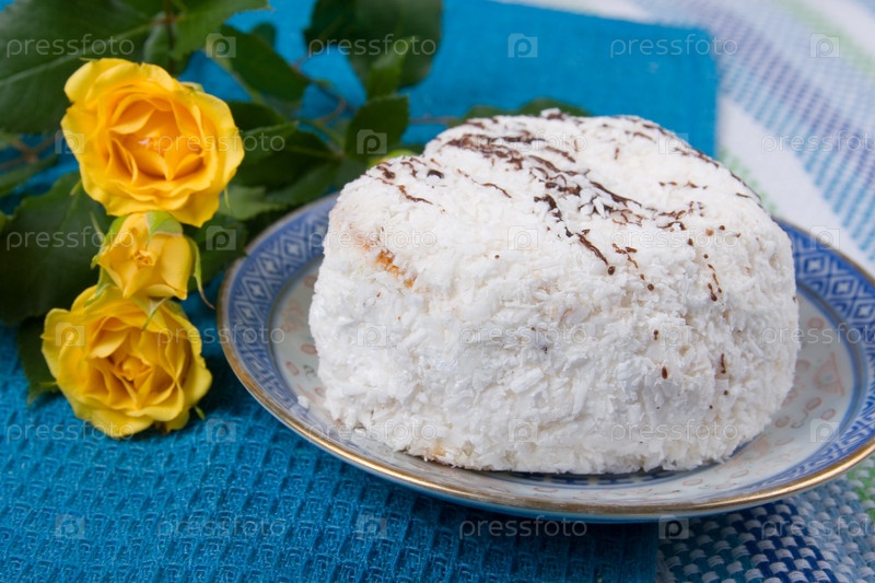 Торт и розы на голубом фоне
