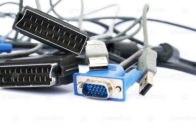 Кабели и разъемы на белом фоне