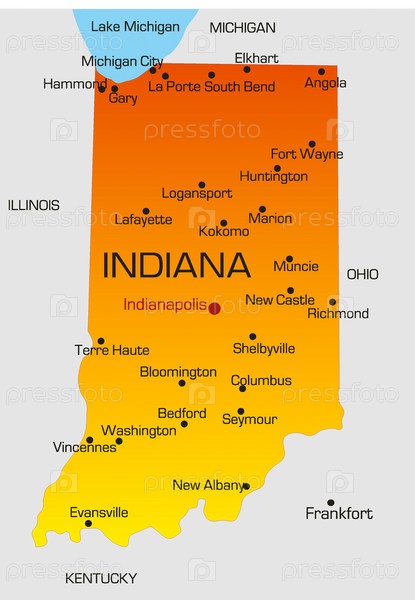 Векторная карта штата Индиана, США