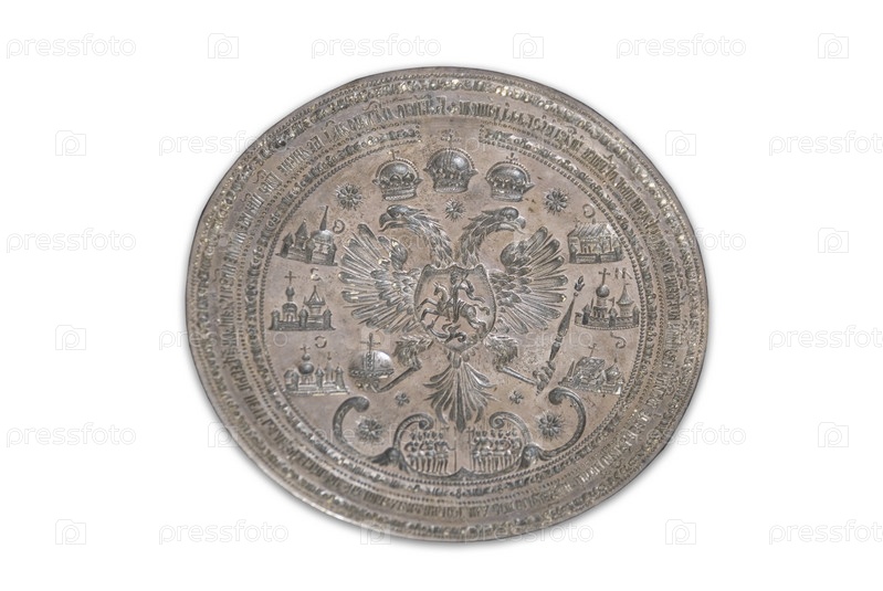 Старинная монета на белом фоне