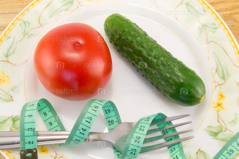 Огурец и помидор с измерительной лентой