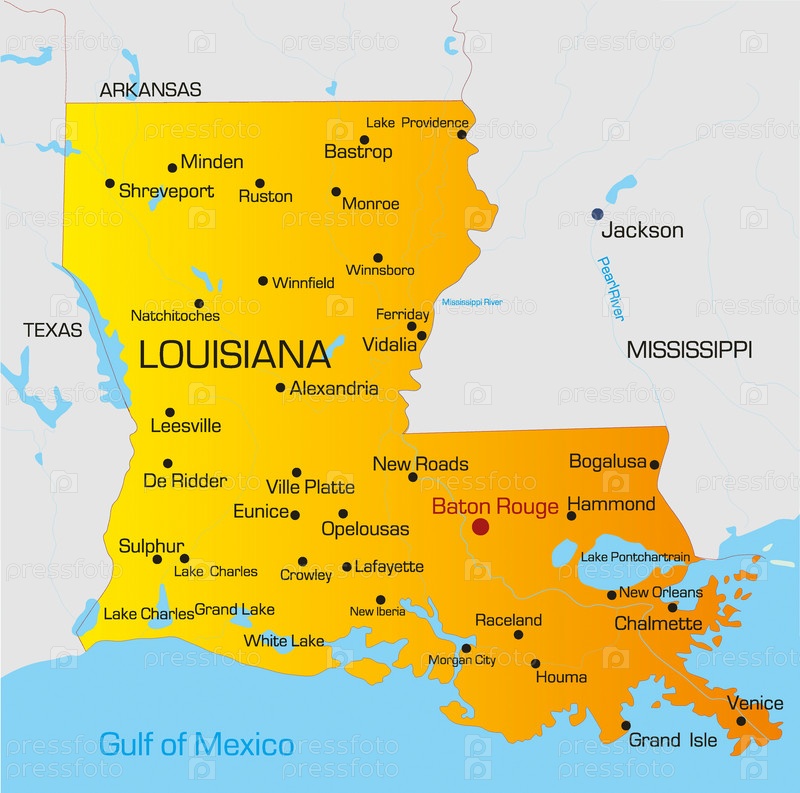 Векторная карта штата Луизиана, США