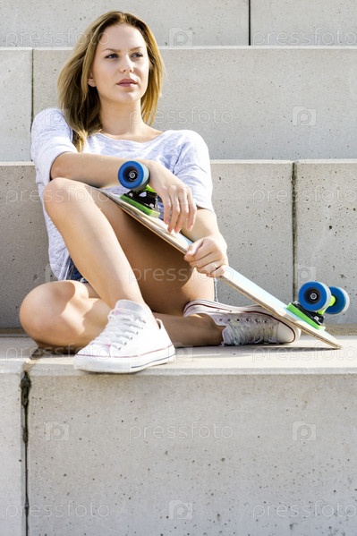 Женщина со скейтом
