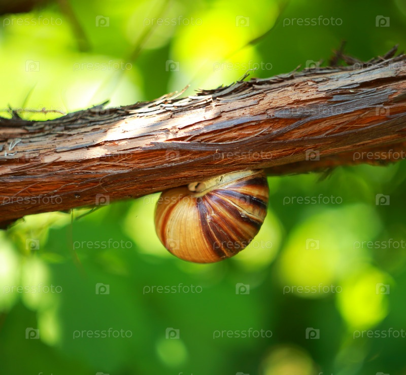 Винная улитка на ветке винограда