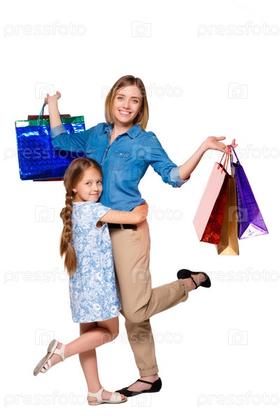 Мама с дочкой делают покупки
