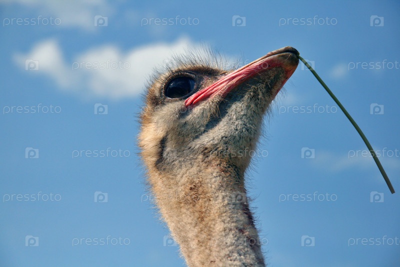 Голова страуса на фоне голубого неба