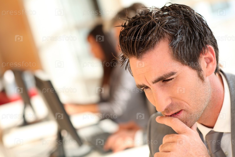 Мужчина ищет решение задачи