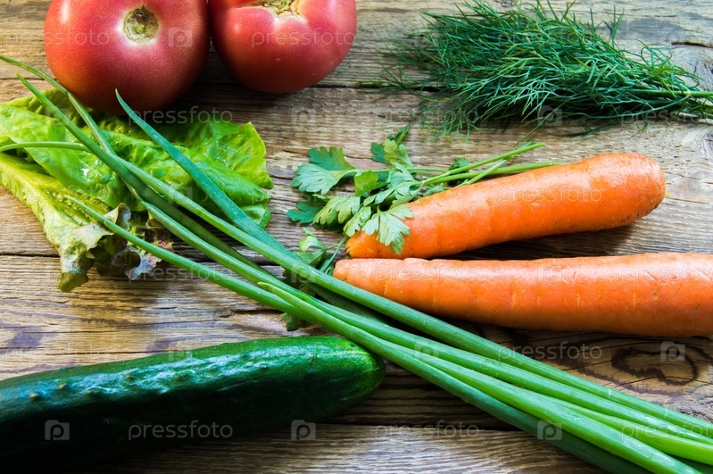 Овощи и зелень для приготовления салата