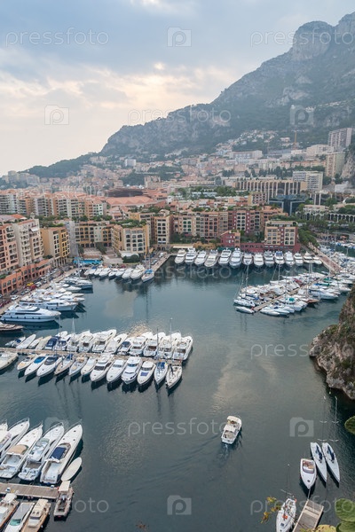 Вид с воздуха на гавань Монако с роскошными яхтами, Французская Ривьера