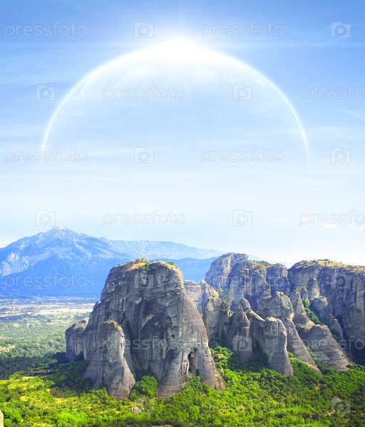 Фантастический пейзаж с планетой