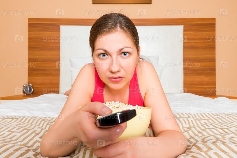 Брюнетка с пультом дистанционного управления