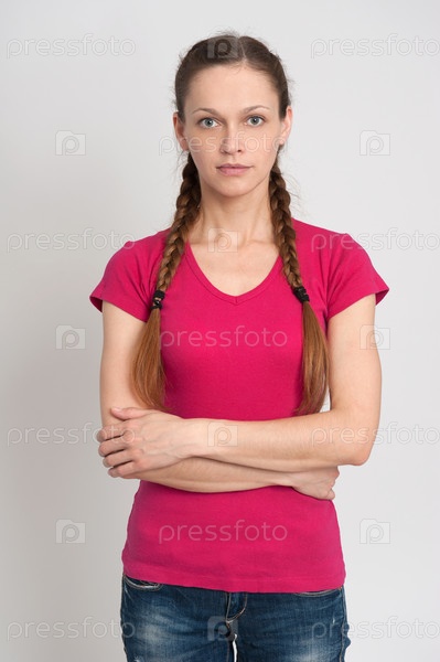Девочка с косичками, носить футболку