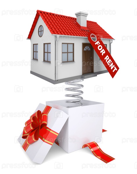 Подарочная коробка с красной полосой и дом в аренду