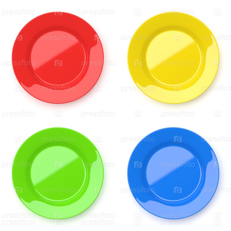 Тарелки керамические цветные на белом