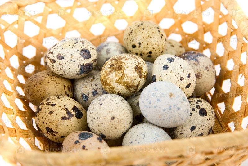 Перепелиные яйца в плетеной корзине