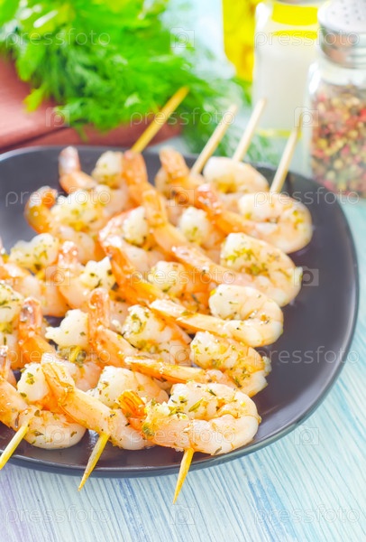 Вареные креветки на палочках