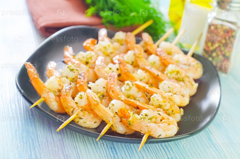 Вареные креветки на шпажках