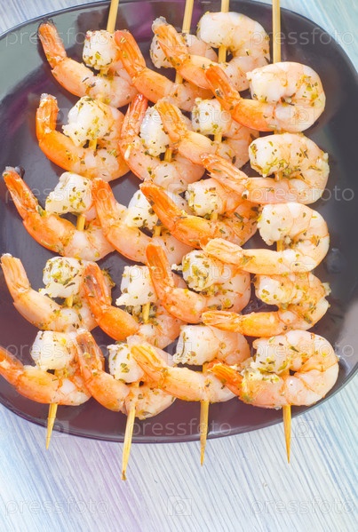 Вареные креветки на шпажках