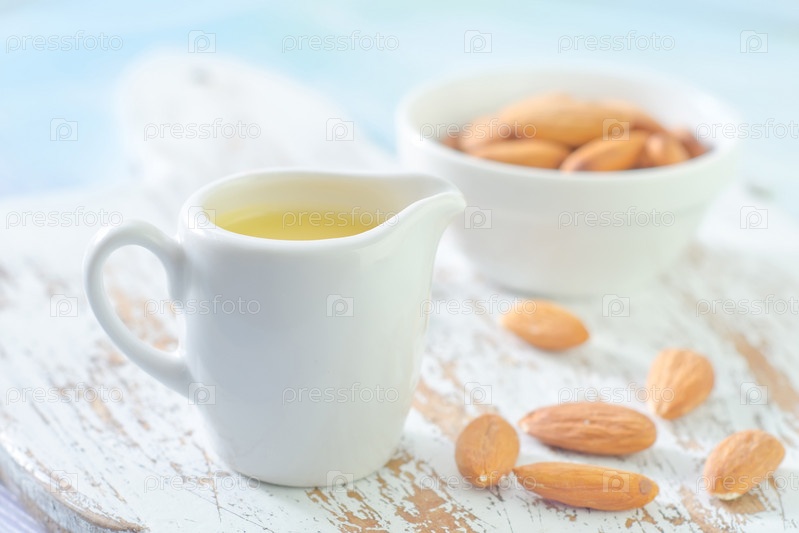 Миндальное эфирное масло и миндаль в миске