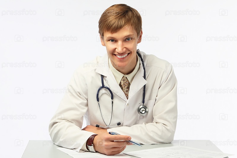 Портрет молодого врача на белом фоне
