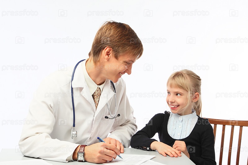 Портрет молодого мужчины-педиатра с маленькой пациенткой