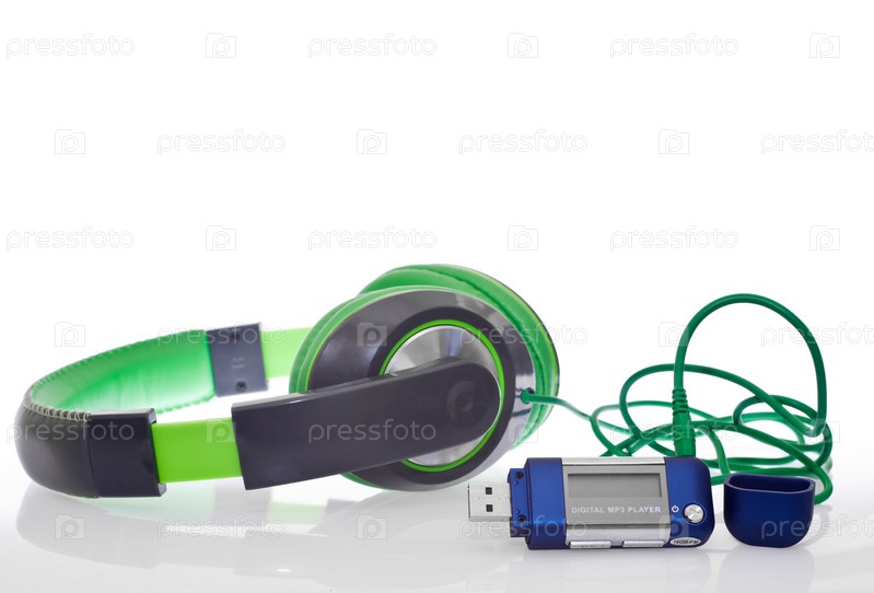 Музыкальный проигрыватель и зеленый Наушники
