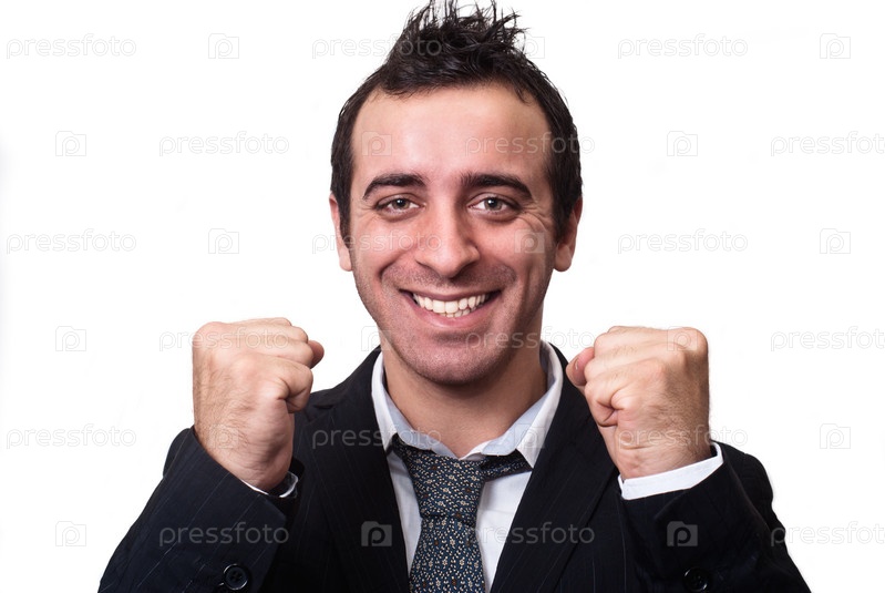 Молодой предприниматель, пользуются успехом, изолированные на белом фоне