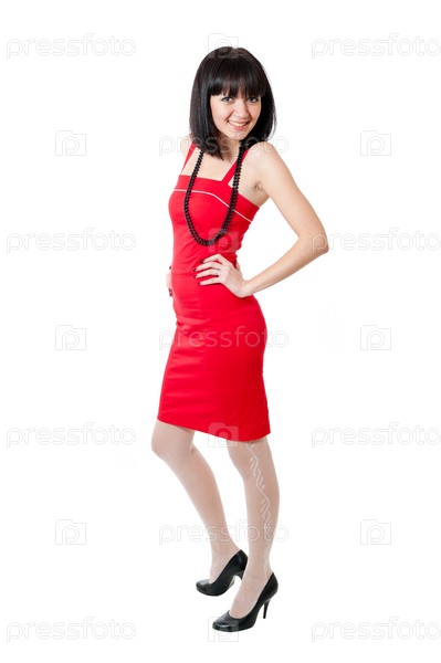 Красивая девушка в красном платье